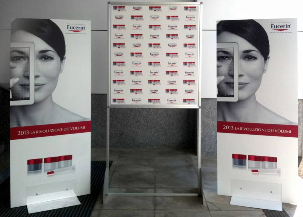 We print a wide range of functional and easily transportable display systems. Our materials are andatti for exhibitions, fairs, events, displays for shops and totems. Here is an example of media:
